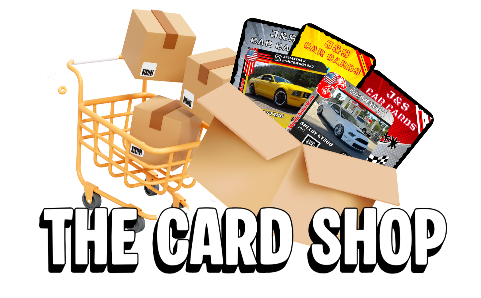 Card FAQ How Do I Order? Create A New Card Update A Card Shop Clear All Card Packs Foils Holographics Merchandise Clothing Filters Categories Select a Category All Card Packs Foils Holographics Merchandise Clothing Filter Clear Filter 1 Pack (18 Cards) Normal Car Cards $26.50 Add To Cart Added! 1 Pack (9 Cards) Holographic Car Cards $14.50 Add To Cart Added! 1 Pack (9 Cards) Foil Car Cards $16.00 Add To Cart Added! 3 Pack (54 Cards) of Normal Car Cards $65.50 Add To Cart Added! 3 Pack (27 Cards) of Holographic Car Cards $33.50 Add To Cart Added! 3 Pack (27 Cards) of Foil Car Cards $36.50 Add To Cart Added! 6 Pack (108 Cards) of Normal Car Cards $120.50 Add To Cart Added! Clear Magnetic Card Cases $5.00 Add To Cart Added! 3D Printed Card Cases from $10.00 Select Color Black/White Blue/White Red/White Red/Black White/Black Green/White Purple/White Add To Cart Added! Collector Startup Kit $10.50 Add To Cart Added! J&S OG T-Shirt $25.00 Small Medium Large XL 2XL 3XL Add To Cart Added! Your Story "Empowers" T-Shirt from $35.00 Select Size XS S M L XL 2XL 3XL Add To Cart Added! Your Story Empowers Hoodie from $48.00 Select Size S M L XL 2XL 3XL Add To Cart Added! Your Story Inspires T-Shirt from $35.00 Select Size XS S M L XL 2XL 3XL Add To Cart Added! Your Story Inspires Hoodie from $48.00 Select Size S M L XL 2XL 3XL Add To Cart Added! Your Story Evokes T-Shirt from $35.00 Select Size XS S M L XL 2XL 3XL Add To Cart Added! Your Story Evokes Hoodie from $48.00 Select Size S M L XL 2XL 3XL Add To Cart Added! No results found No results match your search. Try removing a few filters.